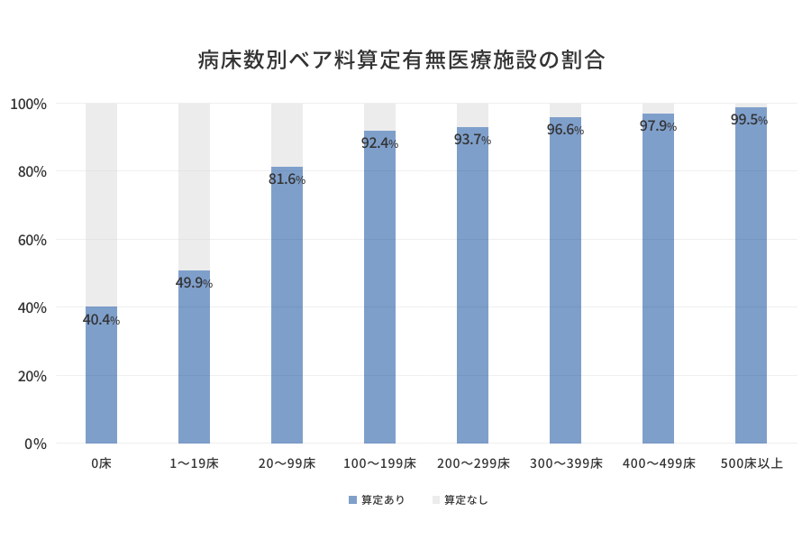 また、今回の調査で病床数別ベア料算定有無医療機関の割合について、顕著な傾向がみられました。